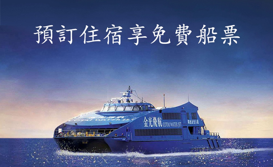 - 13歲或以上之額外賓客入住須每天附加收取澳門幣350的住宿費用。但船票須另外購買。