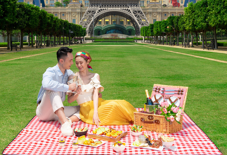 面向澳門巴黎人的一片清新翠綠的法式花園,是觀賞巴黎鐵塔全景的最佳位置,絕對值得一遊。亦可在巴黎鐵塔前享受愜意浪漫野餐體驗,沉醉於無憂無慮的悠閒時光。